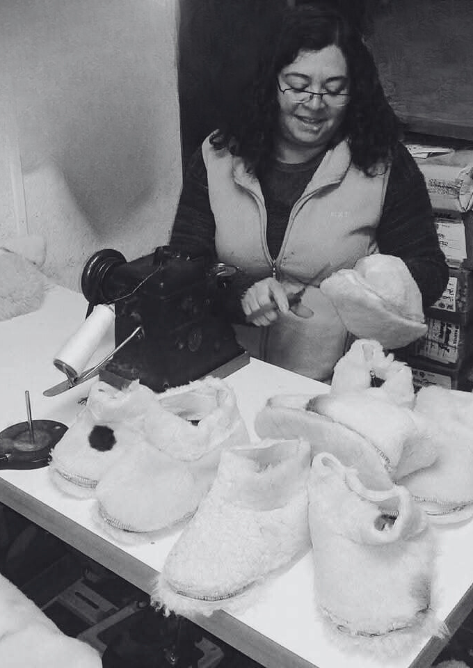 La familia de Alicia Rojas Jaime lleva más de 50 años dedicada a la curtiembre en piel de oveja, manteniendo intacta una tradición que se ha ido perdiendo con el paso de los años en el sur de Chile, por los altos costos de producción. A la empresa le dio vida su madre -Miriam Jaime- y hoy Alicia, junto a su pareja Álex Valderrama, están a la cabeza perfeccionando el oficio, integrando diseños diferenciadores e integrando a una tercera y hasta cuarta generación.