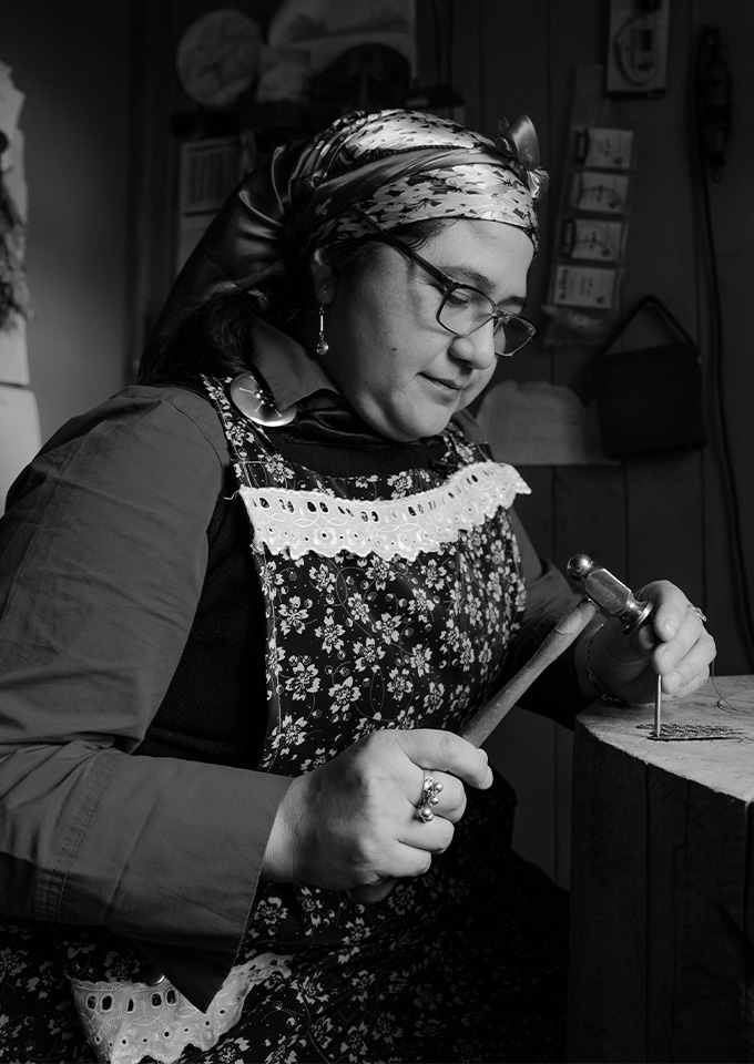 Marcelina Huentecura crea su emprendimiento cuando una agrupación social de su comuna (Carahue, Araucanía, Chile), la invitó a ser ayudante de un grupo de joyeros mapuche. Con el deseo de preservar su cultura y gracias a varias capacitaciones y a su tenacidad, elabora completamente a mano joyas que rescatan modelos tradicionales de sus raíces mapuches.